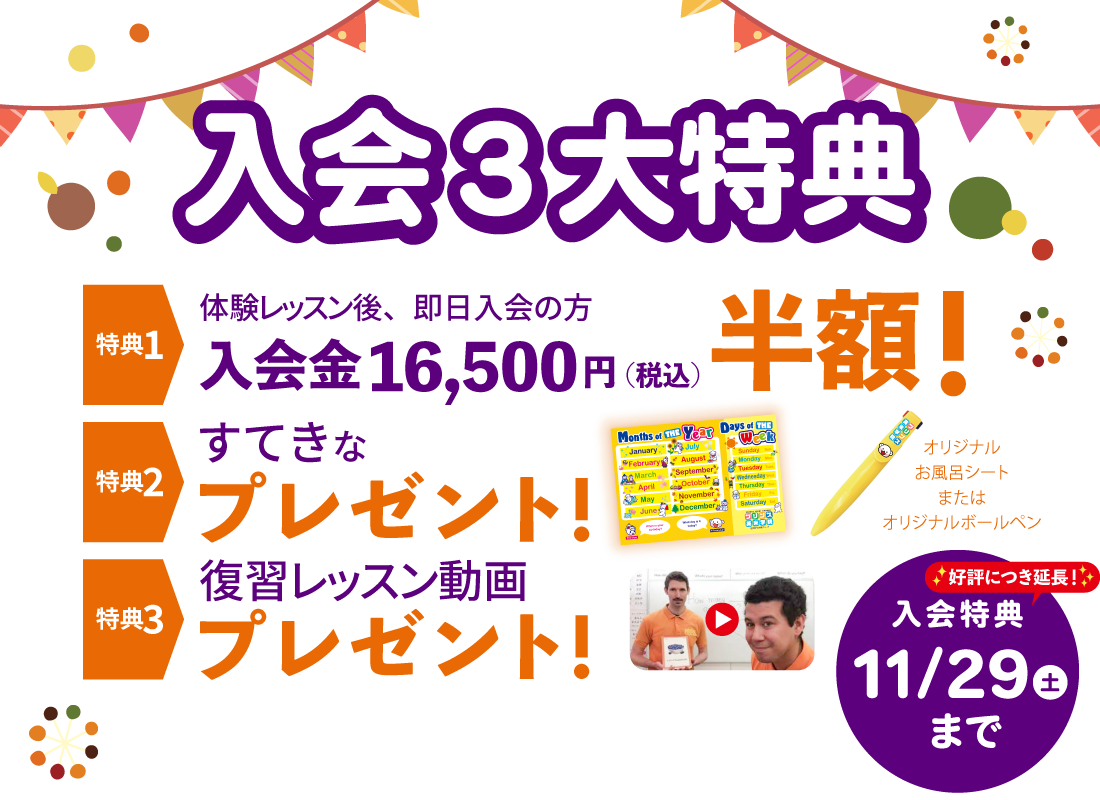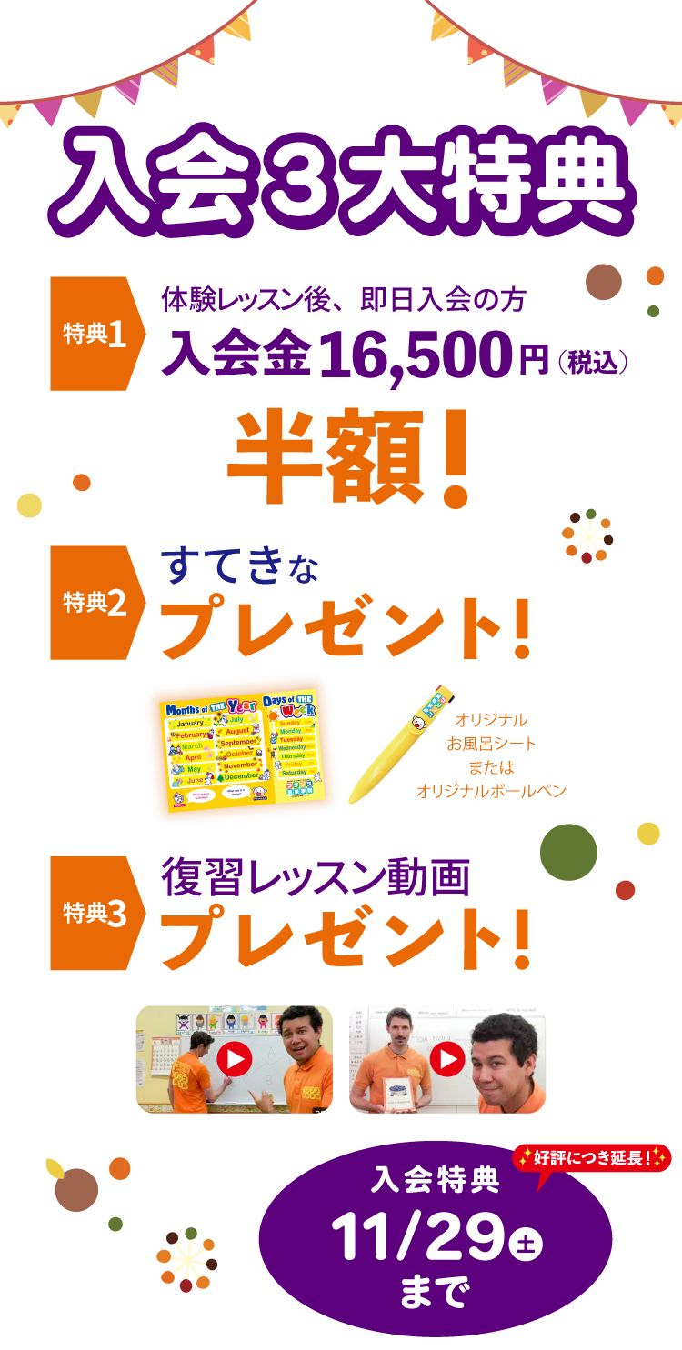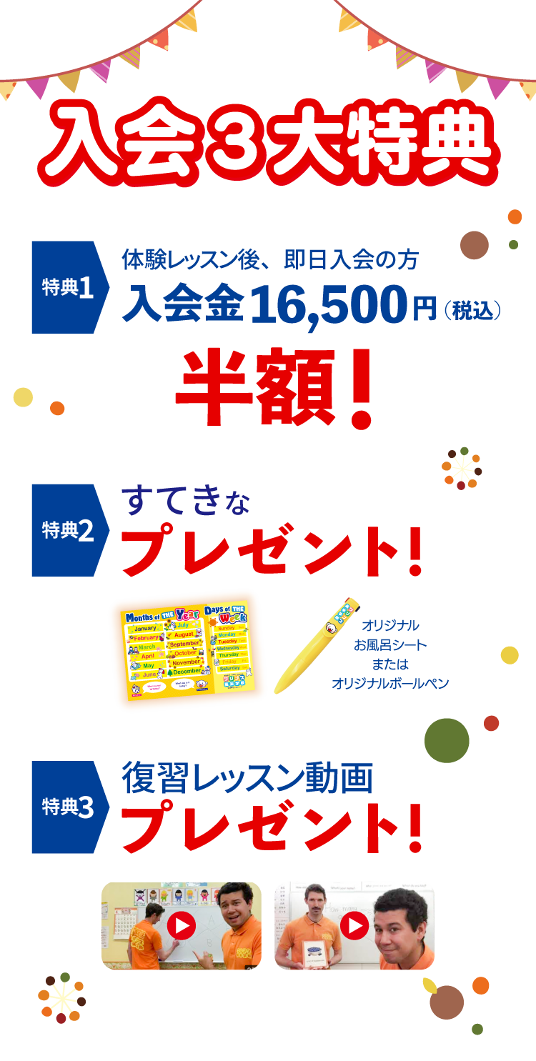 ネイティブ講師による英会話クラスでのお子様の様子については、日本人講師がしっかりと情報を共有します。そして、宿題等のフォローアップは日本人講師がさせていただきます。入会前のご不安もお気軽にご相談ください。