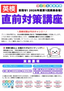 《英検直前対策講座/英検短期集中対策》を開講いたします。